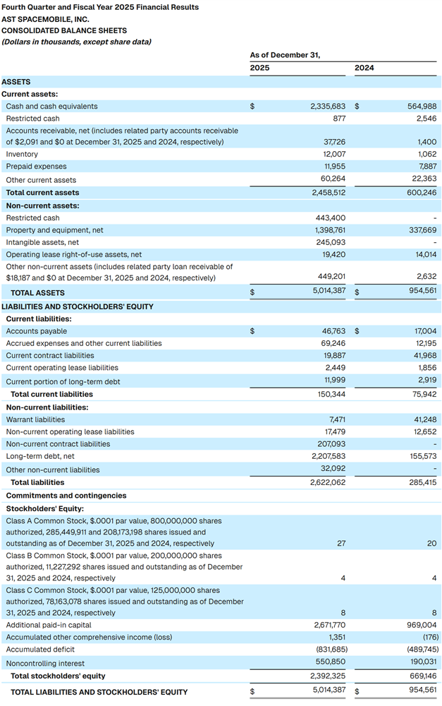 AST董事长兼执行长Abel Avellan表示,2025年,AST首次成为创造营收的企业,在商业、政府、製造、频谱权、智慧财产权组合及资本状况等所有关键营运层面取得显着进展。展望2026年,公司会把基于太空的直连手机(direct-to-device)网路,从初期商业启动推向更广泛的商业服务。