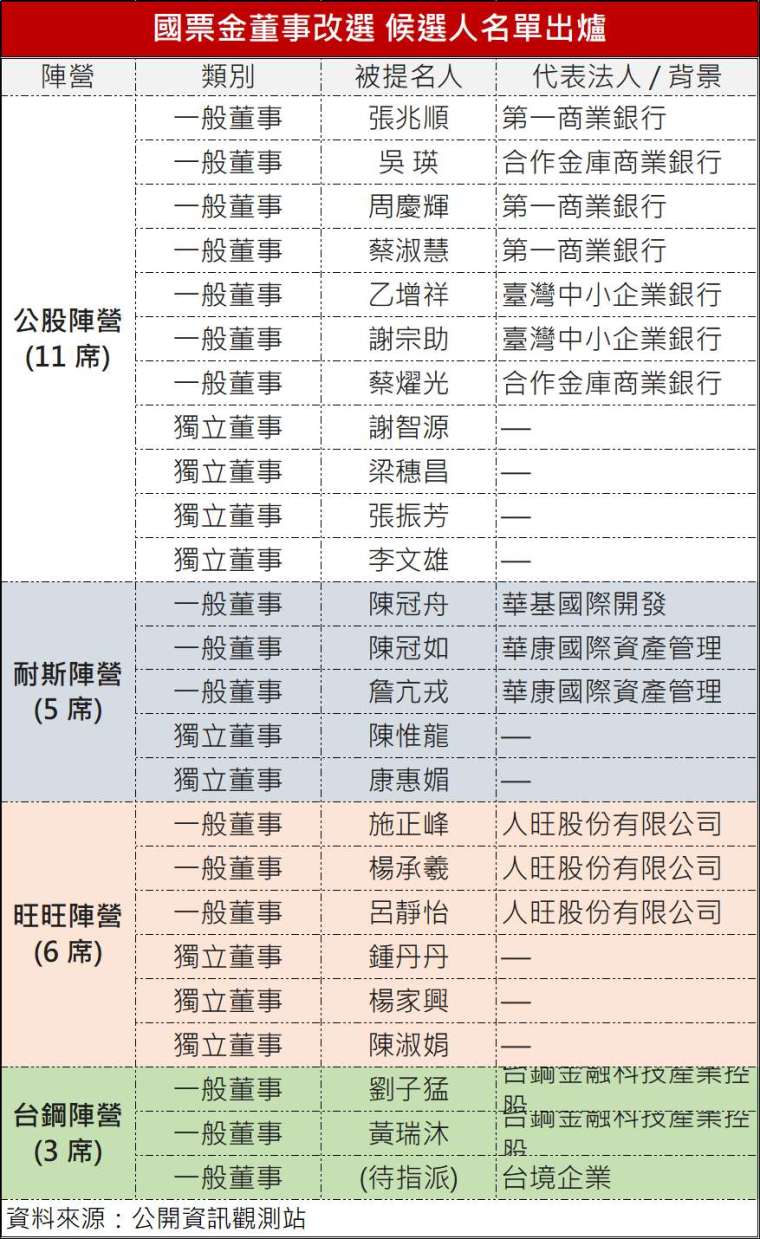 国票金控 (2889-TW) 今年 5 月 29 日股东常会将进行董事改选,昨 (7) 日为候选人提名截止日,观察此次名单呈现超额提名态势,共计 25 位候选人角逐 15 席董事。其中,公股阵营大动作提名 11 席,并请出素有金融救火队长之称的兆丰金前董事长张兆顺挂帅,展现公股强力主导意图,市场预期国票金可望步入官民共治的新局。不过,董事会召开前夕,四方阵营仍有时间协商。