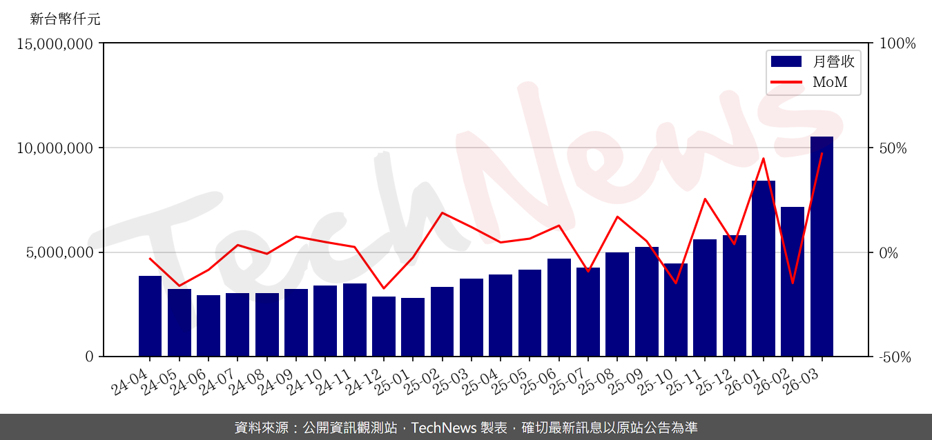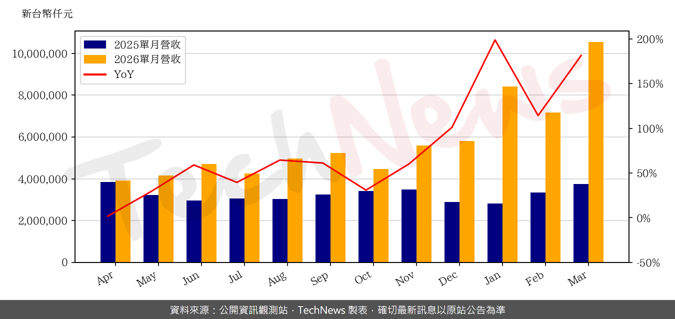 记忆体模组厂威刚公告3月营收,金额首度突破新台币百亿元。同时,2026年第一季合併营收也走在连连创高的路上,以年增1.6倍的步伐跨出261.1亿元的成绩,再创单季新高里程碑。
